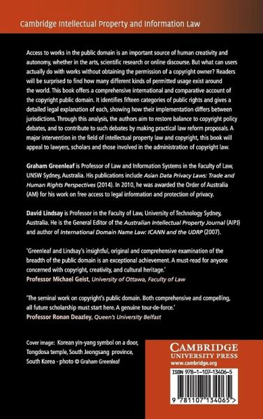 Access to works in the public domain is an important source of human creativity and autonomy, whether in the arts, scientific research or online discourse. But what can users actually do with works without obtaining the permission of a copyright owner? Readers will be surprised to find how many different kinds of permitted usage exist around the world. This book offers a comprehensive international and comparative account of the copyright public domain. It identifies fifteen categories of public rights and gives a detailed legal explanation of each, showing how their implementation differs between jurisdictions. Through this analysis, the authors aim to restore balance to copyright policy debates, and to contribute to such debates by making practical law reform proposals. A major intervention in the field of intellectual property law and copyright, this book will appeal to lawyers, scholars and those involved in the administration of copyright law.
