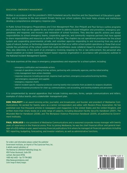 This new book outlines programs and procedures that can be applied to any school system to address hazard mitigation and prevention, emergency preparedness and response, and recovery and restoration of school functions to an effective learning environment. It describes specific actions and assigns responsibilities and response roles to district and individual school staff emergency teams, cooperating agencies, and community response partners that have agreed to share responsibilities and resources as defined in this plan.