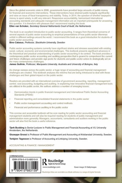 As change sweeps across the public sector, a huge range of accounting and financial management challenges are created. This textbook analyses the reforms that are being introduced to deal with these challenges and their global impact on the public sector. Readers are provided with an international overview of government accounting, reporting, management control, cost accounting, budgeting and auditing. In explaining how innovative financial management tools are utilized in the public sector, the authors address a number of emerging issues: Harmonization trends in public financial management and International Public Sector Accounting Standards (IPSASs) Financial reporting and consolidated financial statements in the public sector Public sector management accounting and control methods Financial and performance auditing in the public sector This concise and accessible textbook will be core reading for public sector accounting and financial management students and will also be required reading for students of public management and administration more generally. Managers, accountants, consultants and auditors working in the public sector will also find the book a useful reference.