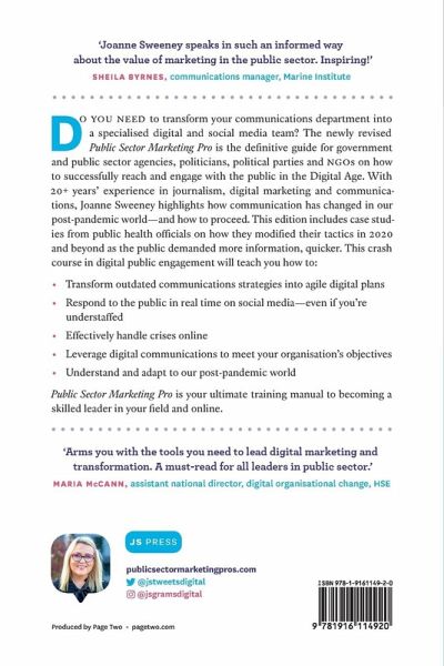 Do you need to transform your communications department into a specialist digital and social media team? The newly revised Public Sector Marketing Pro is the definitive guide for government and public sector agencies, politicians, political parties and NGOs on how to successfully reach and engage with the public in the Digital Age. With over 20 years' experience in journalism, digital marketing, and communications, Joanne Sweeney highlights how communication has changed in our post-pandemic world. New and updated chapters include case studies from public health officials on how they modified their tactics as the public demanded more information quicker than ever before. This crash course in digital public engagement will teach you how to: - Transform outdated communications strategy into agile digital plans - Respond to the public in real time on social media-even if you're understaffed - Effectively respond to crises online - Leverage digital communications to meet your organisation's larger objectives - Understand and adapt to the changes that occurred during the pandemic Public Sector Marketing Pro is your ultimate training manual to becoming a skilled leader in your field and online.