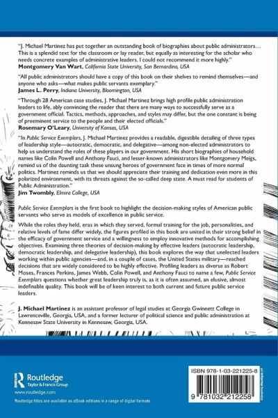 Public Service Exemplars is the first book to highlight the decision-making styles of American public servants who serve as models of excellence in public service.
