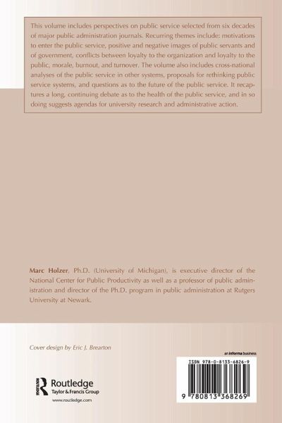 This volume includes perspectives on public service selected from decades of major public administration journals. It also includes cross-national analyses of the public service in other systems, proposals for rethinking public service systems, and questions as to the future of the public service.