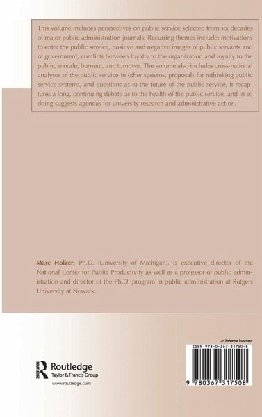 This volume includes perspectives on public service selected from decades of major public administration journals. It also includes cross-national analyses of the public service in other systems, proposals for rethinking public service systems, and questions as to the future of the public service.