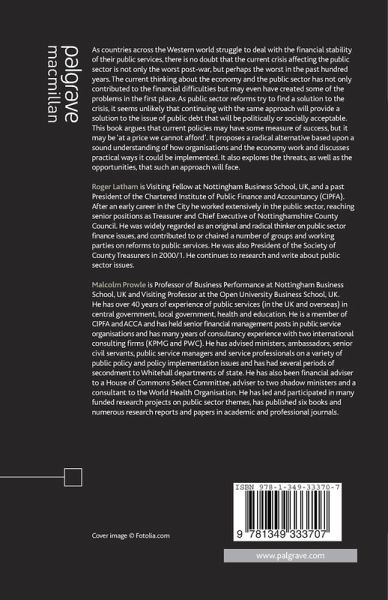 ROGER LATHAM Visiting Fellow at Nottingham Business School, UK, and the current President of the Chartered Institute of Public Finance and Accountancy (CIPFA). After an early career in the City he worked extensively in the public sector, reaching senior positions as Treasurer and Chief Executive of Nottinghamshire County Council. He was widely regarded as an original and radical thinker on public sector finance issues, and contributed to or chaired a number of groups and working parties on reforms to public services. He was also President of the Society of County Treasurers in 2000/1. He continues to research and write about public sector issues. MALCOLM PROWLE Professor of Business Performance at Nottingham Business School, UK and Visiting Professor at the Open University Business School, UK. He has over forty years experience of public services (in the UK and overseas) in central government, local government, health and education. He is a member of CIPFA and has held senior financial management posts in public service organisations and had many years of consultancy experience with two international consulting firms (KPMG and PWC). He has advised Ministers, Ambassadors, senior civil servants, public service managers and service professionals on a variety of public policy and policy implementation issues and has had several periods of secondment to Whitehall departments of state. He has also been financial adviser to a House of Commons Select Committee,adviser to two shadow ministers and a consultant to the World Health Organisation. He has led and participated in many funded research projects on public sector themes, has published six books and numerous research reports and papers in academic and professional journals.