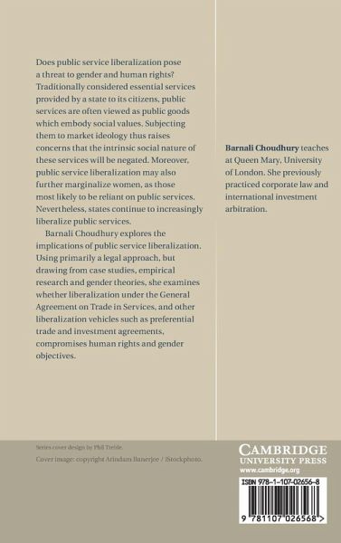 Does public service liberalization pose a threat to gender and human rights? Traditionally considered essential services provided by a state to its citizens, public services are often viewed as public goods which embody social values. Subjecting them to market ideology thus raises concerns that the intrinsic social nature of these services will be negated. Moreover, as those most likely to be reliant on public services, public service liberalization may also further marginalize women. Nevertheless, states continue to increasingly liberalize public services. Barnali Choudhury explores the implications of public service liberalization. Using primarily a legal approach, but drawing from case studies, empirical research and gender theories, she examines whether liberalization under the General Agreement on Trade in Services and other liberalization vehicles such as preferential trade and investment agreements compromise human rights and gender objectives.