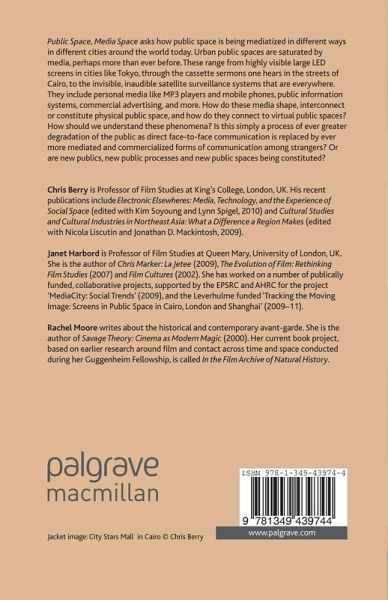 Acknowledgments Notes on Contributors Introduction; C.Berry, J.Harbord & R.O.Moore What Is a Screen Nowadays?; F.Casetti Multi-Screen Architecture; B.Colomina Mapping Orbit: Towards a Vertical Public Space; L.Parks Cairo Diary: Space-Wars, Public Visibility and the Transformation of Public Space in Post-Revolutionary Egypt; M.Abaza Shanghai's Public Screen Culture: Local and Coeval; C.Berry iPhone Girl: Assembly, Assemblages and Affect in the Life of an Image; H.Grace In Transit: Between Labor and Leisure in London's St. Pancras International; R.Moore Encountering Screen Art on the London Underground; J.Harbord & T.Dillon Direct Address: A Brechtian Proposal for an Alternative Working Method; M.Lewandowska Domesticating the Screen-Scenography: Situational Uses of Screen Images and Technologies in the London Underground; Z.Krajina Privatizing Urban Space in the Mediated World of iPod Users; M.Bull Publics and Publicity: Outdoor Advertising and Urban Space; A.M.Cronin Index
