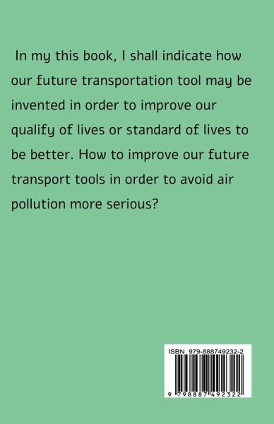 In my this book, I shall indicate how our future transportation tool may be invented in order to improve our qualify of lives or standard of lives to be better. How to improve our future transport tools in order to avoid air pollution more serious? It is my this book discussion about how transport invention or improvement, it will influence public transport passenger service and comfortable need aim. I shall attempt to research how transport improvement question in order to let readers feel how it can influence future public transport tools passenger individual choosing any kinds of pubic transport tools need as well as how is our future actual transport improvement achievement aim in order to keep our standard of lives ( quality of lives ) can be improved to achieve the best service standard and avoid any kinds of future public transport tools passengers number reduces. Because any public transport needs to be improved in order to satisfy passengers comfortable needs. IN passenger comfortable need psychology view, how to improve public transport service quality. It is my main discussion in this book topic, it concerns bus, ferry and rail public transport passenger psychology.