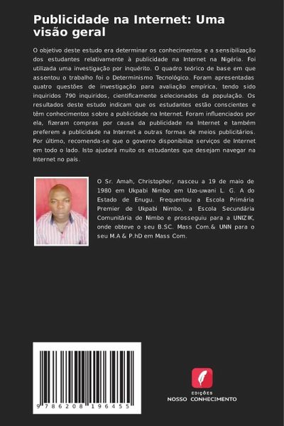 O objetivo deste estudo era determinar os conhecimentos e a sensibilização dos estudantes relativamente à publicidade na Internet na Nigéria. Foi utilizada uma investigação por inquérito. O quadro teórico de base em que assentou o trabalho foi o Determinismo Tecnológico. Foram apresentadas quatro questões de investigação para avaliação empírica, tendo sido inquiridos 790 inquiridos, cientificamente selecionados da população. Os resultados deste estudo indicam que os estudantes estão conscientes e têm conhecimentos sobre a publicidade na Internet. Foram influenciados por ela, fizeram compras por causa da publicidade na Internet e também preferem a publicidade na Internet a outras formas de meios publicitários. Por último, recomenda-se que o governo disponibilize serviços de Internet em todo o lado. Isto ajudará muito os estudantes que desejam navegar na Internet no país.
