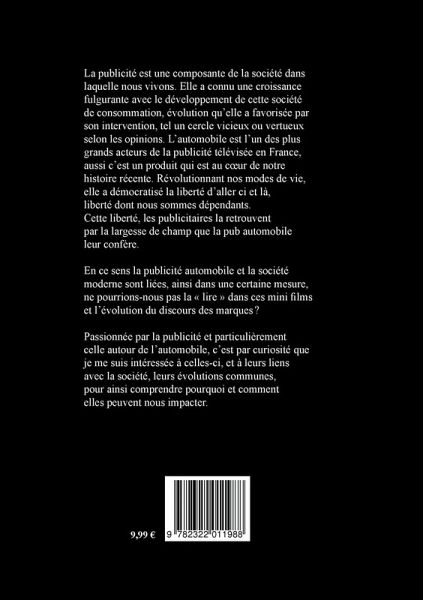 Passionnée d'automobile et de sa publicité, c'est en voulant comprendre le pourquoi de ces pubs qui me donnent des frissons que ce livre est né.