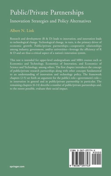 This text is intended for upper-level undergraduate and MBA courses such as Economics and Technology, Economics of Innovation, and Economics of Science and Technology, among others. The first chapter introduces the concept of public/private research partnerships along with other concepts fundamental to an understanding of innovation and technology policy. The framework chapters (2-5) set forth an argument for the public's role - government's role - in innovation in general and in public/private partnership in particular. The remaining chapters (6-14) describe a number of public/private partnerships and, to the extent possible, evaluate their social impact.