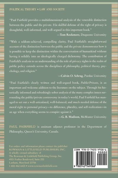 In Public/Private, Fairfield examines the ethical-political significance as well as the policy implications of a right to privacy. Discussing the different applications of privacy laws, technology,property, relationships, Fairfield writes in a style accessible to specialists and students alike.