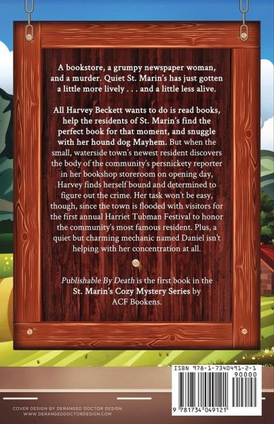 All Harvey Beckett wants to do is read books, help the residents of St. Marin's find the perfect book for that moment, and snuggle with her hound dog Mayhem. But when the small, waterside town's newest resident discovers the body of the community's persnickety reporter in her bookshop storeroom on opening day, Harvey finds herself bound and determined to figure out the crime. Her task won't be easy, though, since the town is flooded with visitors for the first annual Harriet Tubman Festival to honor the community's most famous resident. Plus, a quiet but charming mechanic named Daniel isn't helping with her concentration at all. Publishable By Death is the first book in the Harvey Beckett Mystery Series by A. C. F. Bookens.