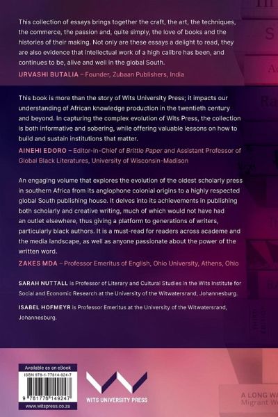In 2022 Wits University Press marked its centenary, making it the oldest, most established university press in sub-Saharan Africa. While in part modelled on scholarly publishers from the global North, it has had to contend with the constraints of working under global South conditions: marginalisation within the university, budgetary limitations, small local markets, unequal access to international sales channels, and the privileging of English language publishing over indigenous languages. This volume explores what the Press has achieved, and what its modes of reinvention might look like. In widening and deepening our understanding of the Press as an example of a global South scholarly publisher, this volume asks how publishing can contribute to a broader understanding of Southern knowledge production. Featuring contributions from scholars, publishers and authors this multi-voiced volume showcases the history of the Press's publishing activities over 100 years: from documenting its evolution through book covers and giving credence to some of the leading black intellectuals and writers of the early 20th century and the success of those works in spite of their authors' racial marginalisation, to the role of women, both in publishing and in the spaces afforded to women's writing on the Press's list. The collection concludes with essays by contemporary authors who detail not only their experiences of working with Southern publishers, but also the politics and influences governing their decisions to choose the Press over a Northern publisher. Publishing from the South shows the strategies deployed by the Press to professionalise Southern knowledge making, and in the process demonstrating how university presses in the global South support the scholarly missions of their universities for both local and global audiences.