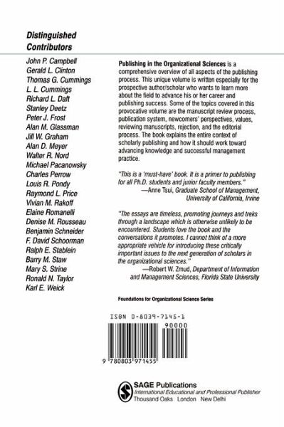 This comprehensive overview of all aspects of the publishing process has been written especially for prospective authors who want to learn more about the field to advance their careers and publishing success. More than just a `how to' book, this volume explains the entire context of scholarly publishing and how it should, ideally, work toward advancing knowledge and successful management practice.