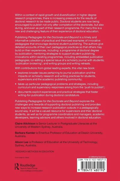 Within a context of rapid growth and diversification in higher degree research programs, there is increasing pressure for the results of doctoral research to be made public. Doctoral students are now being encouraged to publish not only after completion of the doctorate, but also during, and even as part of their research program. For many this is a new and challenging feature of their experience of doctoral education. Publishing Pedagogies for the Doctorate and Beyond is a timely and informative collection of practical and theorised examples of innovative pedagogies that encourage doctoral student publishing. The authors give detailed accounts of their own pedagogical practices so that others may build on their experiences, including: a program of doctoral degree by publication; mentoring strategies to support student publishing; innovations within existing programs, including embedded publication pedagogies; co-editing a special issue of a scholarly journal with students; 'publication brokering', and writing groups and writing retreats. With contributions from global leading experts, this vital new book: explores broader issues pertaining to journal publication and the impacts on scholarly research and writing practices for students, supervisors and the academic publishing community takes up particular pedagogical problems and strategies, including curriculum and supervisory responses arising from the 'push to publish' documents explicit experiences and practical strategies that foster writing-for-publication during doctoral candidature. Publishing Pedagogies for the Doctorate and Beyond explores the challenges and rewards of supporting doctoral publishing and provides new ways to increase research publication outputs in a pedagogically sound way. It will be a valued resource for supervisors and their doctoral students, as well as for program coordinators and managers, academic developers, learning advisors, and others involved in doctoral education.