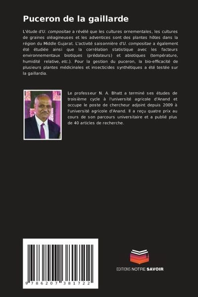 L'étude d'U. compositae a révélé que les cultures ornementales, les cultures de graines oléagineuses et les adventices sont des plantes hôtes dans la région du Middle Gujarat. L'activité saisonnière d'U. compositae a également été étudiée ainsi que la corrélation statistique avec les facteurs environnementaux biotiques (prédateurs) et abiotiques (température, humidité relative, etc.). Pour la gestion du puceron, la bio-efficacité de plusieurs plantes médicinales et insecticides synthétiques a été testée sur la gaillardia.