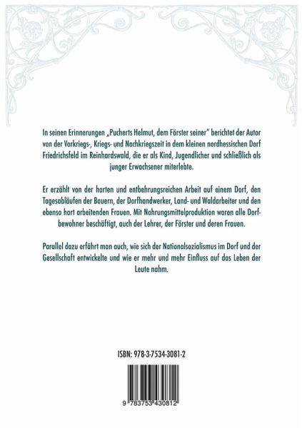In seinen Erinnerungen 'Pucherts Helmut, dem Förster seiner' berichtet der Autor von der Vorkriegs-, Kriegs und Nachkriegszeit in dem kleinen nordhessischen Dorf Friedrichsfeld im Reinhardswald, die er als Kind, Jugendlicher und schließlich als junger Erwachsener miterlebte. Er erzählt von der harten und entbehrungsreichen Arbeit auf einem Dorf, den Tagesabläufen der Bauern, der Dorfhandwerker, Land- und Waldarbeiter und den ebenso hart arbeitenden Frauen. Mit Nahrungsmittelproduktion waren alle Dorfbewohner beschäftigt, auch der Lehrer, der Förster und deren Frauen.Parallel dazu erfährt man auch, wie sich der Nationalsozialismus im Dorf und der Gesellschaft entwickelte und wie er mehr und mehr Einfluss auf das Leben der Leute nahm.