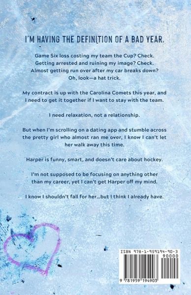 I'm having the definition of a bad year. Game Six loss costing my team the Cup? Check. Getting arrested and ruining my image? Check. Almost getting run over after my car breaks down? Oh, look-a hat trick. My contract is up with the Carolina Comets this year, and I need to get it together if I want to stay with the team. I need relaxation, not a relationship. But when I'm scrolling on a dating app and stumble across the pretty girl who almost ran me over, I know I can't let her walk away this time. Harper is funny, smart, and doesn't care about hockey. I'm not supposed to be focusing on…mehr