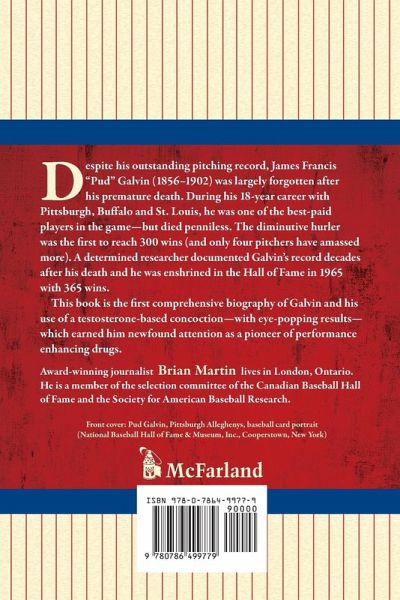 Despite his outstanding pitching record, James Francis ""Pud"" Galvin (1856-1902) was largely forgotten after his premature death. During his 18-year career with Pittsburgh, Buffalo and St. Louis, he was one of the best-paid players in the game--but died penniless. The diminutive hurler was the first to reach 300 wins (and only four pitchers have amassed more). A determined researcher documented Galvin's record decades after his death and he was enshrined in the Hall of Fame in 1965 with 365 wins. This book is the first comprehensive biography of Galvin and his use of a testosterone-based concoction--with eye-popping results--which earned him newfound attention as a pioneer of performance enhancing drugs.