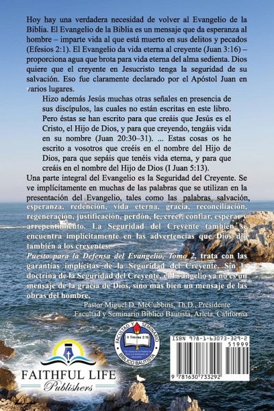 Hoy hay una verdadera necesidad de volver al Evangelio de la Biblia. El Evangelio de la Biblia es un mensaje que da esperanza al hombre - imparte vida al que está muerto en sus delitos y pecados (Efesios 2:1). El Evangelio da vida eterna al creyente (Juan 3:16) - proporciona agua que brota para vida eterna del alma sedienta. Dios quiere que el creyente en Jesucristo tenga la seguridad de su salvación. Eso fue claramente declarado por el Apóstol Juan en varios lugares. Hizo además Jesús muchas otras señales en presencia de sus discípulos, las cuales no están escritas en este libro. Pero éstas se han escrito para que creáis que Jesús es el Cristo, el Hijo de Dios, y para que creyendo, tengáis vida en su nombre (Juan 20:30-31). ... Estas cosas os he escrito a vosotros que creéis en el nombre del Hijo de Dios, para que sepáis que tenéis vida eterna, y para que creáis en el nombre del Hijo de Dios (I Juan 5:13). Una parte integral del Evangelio es la Seguridad del Creyente. Se ve implícitamente en muchas de las palabras que se utilizan en la presentación del Evangelio, tales como las palabras salvación, esperanza, redención, vida eterna, gracia, reconciliación, regeneración, justificación, perdón, fe, creer, confiar, esperar y arrepentimiento. La Seguridad del Creyente también se encuentra implícitamente en las advertencias que Dios dio también a los creyentes. Tomo 2, Puesto para la Defensa del Evangelio, trata con las garantías implícitas de la Seguridad del Creyente. Sin la doctrina de la Seguridad del Creyente, el Evangelio ya no es un mensaje de la gracia de Dios, sino más bien un mensaje de las obras del hombre.