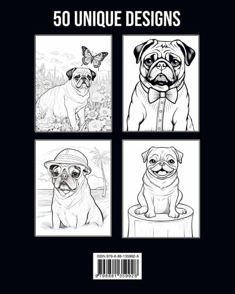 50 Cute Images with Pugs Coloring Book by MandyKfm Pug Coloring Book offers a unique way to express your creativity and promote relaxation at the same time. The pages of the book contain detailed illustrations of Pugs waiting for you to color. Great for all skill levels Whether you're a beginner or an advanced artist, this coloring book is ideal for anyone who loves Pugs. Each image has been carefully designed to allow you to use colors and techniques as you wish and create your own interpretation. A great gift Our books make great birthday gifts for girls, teens, adults, or anyone who loves Pugs. Order today and get inspired by this unique Pug Coloring Book!