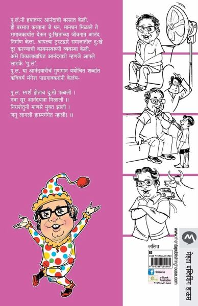 PULA'S LIFE WAS A ONE FULL OF HAPPINESS. THOUGH THERE WERE MANY OTHER SHADES TO IT, THE ONLY ONE THAT ALWAYS PREVAILED WAS THAT OF CONTENT, SATISFACTION AND BLISS. HE HAS SPREAD HAPPINESS THROUGH HIS EVERY ACT. HE WAS A WRITER, A SINGER AND A JOKER AS WELL. EACH ROLE WAS PLAYED BY HIM TO PERFECTION. A MASTER MIND, THAT IS WHAT ONE WOULD WANT TO CALL HIM. HE PRESENTED LITERATURE IN VARIOUS FORMS; STORIES, TRAVALOGUES, BIOGRAPHIES, DRAMAS, ONE-ACT PLAYS AND SCRIPTS AS WELL. HIS ANECDOTES HELPED ALL TO LAUGH AND ENJOY, RIGHT FROM THE OLD PEOPLE TO THE YOUNGEST GENERATION. MRS. AND MR. BHURKE TOGETHER HAD COMPILED A PROGRAM WHICH CONSISTED OF MANY OF THIS GREAT WRITER'S LITERATURE, THE SONG THAT HE COMPOSED OR DIRECTED, ETC. LATER, PEOPLE WOULD COME FORWARD AND SHARE THEIR MEMORIES ABOUT PULA. THESE MEMORIES WERE SOON PENNED DOWN BY THE COUPLE. SOON, THEY WERE ABLE TO KNOW MORE ABOUT PULA FROM CINE DIRECTOR RAM GABALE AND PANDIT BHIMSEN JOSHI. SHYAM BHURKE HAS A STYLE WITH WORDS AND PREFERS WRITING LINED WITH HUMOUR RATHER THAN MAKING IT SERIOUS. A READER CAN ENJOY ANY PAGE FROM THE BOOK. THERE IS HARDLY ANY NEED TO FOLLOW THE SEQUENCE. THROUGHOUT HIS LIFE, PULA EARNED A LOT IN TERMS OF NAME, FAME AND WEALTH. BUT HE DID NOT KEEP ANYTHING FOR HIMSELF. HE DONATED EVERYTHING TO A NOBLE CAUSE. HE FOUNDED A TRUST AND HELPED TO HELP MANY. HE SPENT EVERY SINGLE RUPEE FOR THE BETTERMENT OF OTHERS. THE GREAT POET MANGESH PADGAONKAR ONCE HAD WRITTEN THAT; 'AS PULA TOUCHES ONE, ALL THE SORROWS RUN AWAY, A NEW NOTE STARTS PLAYING THE SONG, ANXIETY SIMPLY GOES AWAY, A SMILE OF MILLION DOLLARS IS SEEN ON SAD FACES; GRIEF AND BURDEN MELTS AWAY... EVEN WHEN PULA WAS QUITE ILL, HIS HUMOUR DID NOT ABANDON HIM. HE WOULD LIGHTLY COMMENT BY SAYING, 'UNTIL NOW I HAVE RECEIVED MANY ACADEMY AWARDS, NOW IS THE TIME FOR ANATOMY AWARDS.' HIS KNEES WOULD CAUSE HIM SEVERE PAIN IN RAINY SEASON, ESPECIALLY IN THE CLOUDY WEATHER. HE WOULD THEN SWITCH OF THE RADIO IF ANY SONG HAD THE WORD CLOUD IN IT. HE HAD ALSO STOPPED READING THE FAMOUS SANSKRIT EPIC MEGHDOOT AS THE MERE MENTION OF CLOUDS IN IT WOULD CAUSE HIM SEVERE KNEE PAIN. HE HAD LOST HIS HEARING ABILITY AND WOULD SAY 'MY EARS DO NOT LISTEN TO WHAT I SAY.' ACCEPTING THE HYPERTENSION-HIGH BP HE WOULD JOKINGLY SAY-'MY BLOOD IS BEING PUMPED AT A FASTER PACE IN A WRONG AGE.' SHYAM BHURKE HAS PRESENTED MANY SUCH SMALL STORIES RELATED TO THE GREAT FAMOUS PERSONALITY PULA. READERS ARE SURE TO ENJOY IT. '¿¿¿¿'¿¿ ¿¿¿¿ ¿¿ ¿¿ ¿¿¿¿¿¿¿¿¿¿ ¿¿¿. ¿¿¿¿¿¿ ¿¿¿¿¿¿¿ ¿¿¿¿¿¿¿¿¿¿¿¿¿¿¿¿¿, ¿¿¿¿¿¿ ¿¿¿¿¿ ¿¿¿¿¿¿¿¿¿¿¿¿¿¿ ¿¿¿¿¿¿¿ ¿¿¿¿¿¿¿¿¿ ¿¿¿¿ ¿¿¿¿ ¿¿¿¿. ¿¿¿¿¿¿, ¿¿¿¿ ¿¿¿ ¿¿¿¿ ¿¿ ¿¿¿ ¿¿¿¿¿¿ ¿¿¿¿¿ ¿¿¿¿¿¿¿¿ ¿¿¿¿¿¿¿ ¿¿¿¿¿¿¿ ¿¿.¿. ¿¿¿¿ ¿¿¿¿. ¿¿¿¿¿¿¿¿¿¿¿¿, ¿¿¿¿¿¿¿¿¿¿¿¿¿, ¿¿¿¿¿¿¿, ¿¿¿¿¿¿¿¿, ¿¿¿¿¿, ¿¿¿¿¿ ¿¿¿ ¿¿¿¿¿ ¿¿¿¿¿¿¿ ¿¿¿¿¿¿¿ ¿¿¿¿ ¿¿¿¿¿¿¿ ¿¿¿¿¿¿¿. ¿¿¿¿¿¿¿¿¿¿ ¿¿¿¿¿¿¿¿¿ ¿¿¿¿¿¿¿¿¿ ¿¿¿¿¿¿ ¿¿¿¿¿¿ ¿¿.¿¿.¿¿ ¿¿¿¿¿¿ ¿¿ ¿¿¿¿¿¿¿¿ ¿¿¿¿¿¿¿ ¿¿¿¿¿¿. '¿¿¿¿'¿¿ ¿¿¿¿¿¿¿ ¿ ¿¿¿¿ ¿¿¿¿¿¿ ¿¿¿¿¿¿¿¿¿¿ ¿ '¿¿¿¿'¿¿ ¿¿¿¿¿¿¿¿¿ ¿¿¿¿¿¿ ¿¿¿¿ ¿¿¿ ¿¿¿¿¿¿¿¿¿ ¿¿¿¿¿¿ ¿¿¿¿¿¿¿¿ ¿¿¿¿ ¿¿¿. ¿¿¿¿¿¿¿¿¿ ¿¿¿¿¿¿¿¿ ¿¿¿ '¿¿¿¿'¿¿¿¿ ¿¿¿¿¿ ¿¿¿¿