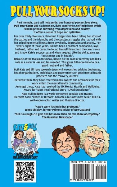 Part memoir, part self help guide, one hundred percent love story. Pull Your Socks Up! is a hands on, lived experience, self-help book which will help those suffering from depression and anxiety. It offers a sense of hope and optimism. For over thirty-five years, Kate Hull Rodgers has been telling her story of the battles and the triumphs and the constant struggles she has had with her crippling mental illness; from psychosis, depression and anxiety. For twenty-eight of those years, Bill has been a constant companion, loyal husband, father and carer. He found himself thrust into the carer's role and is now Kate's support as and when needed. Like the old adage says, "in sickness and in health". Because of the tools in this book, Kate is on the road of recovery and Bill's role as a carer is less and less needed. This gives Bill more time to be a good husband and father. Both Kate and Bill have spoken in twenty-nine countries: advising businesses, health organizations, individuals and governments on good mental health practices and the recovery journey. Between them, they have received many awards and accolades for their work within the mental health community. Amongst these, Kate has received the UK Mental Health and Wellbeing Award for "Most Inspirational Story - Lived Experience" . Kate Hull Rodgers is a world-renowned speaker and trainer. Her first book, 'Pearls of Bizdom', became a business best seller. Bill is a well-known actor, writer and theatre director. 'Kate's work is simple but profound.' Jenny Shipley, former Prime Minister of New Zealand "Bill is a rough-cut gem and has more than his fair share of empathy." The Guardian Newspaper
