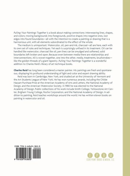 Pulling Your Paintings Together is a book about making connections: interweaving lines, shapes, and colors; moving backgrounds into foregrounds, positive shapes into negative ones, lost edges into found boundaries-all with the intention to create a painting or drawing that is a harmonious unit, with all elements subordinated to the effect of the whole. The medium is unimportant. Watercolor, oil, pen-and-ink, charcoal-all are here, each with its own set of rules and techniques. Yet each is surprisingly unfixed in its treatment. Oil can be handled like watercolor, charcoal like oil, pen lines can be smudged and softened, solid boundaries left broken and open. Because even between media there are relationships and interconnections. All is woven together, one into the other, media, treatments, brushstrokes-like the golden threads of a giant tapestry. Pulling Your Paintings Together is a wonderful addition to Charles Reid's library of art technique books. Charles Reid has long been considered a master painter. His paintings are fresh and spontaneous, displaying his profound understanding of light and color and expert drawing ability. Reid was born in Cambridge, New York, and studied art at the University of Vermont and the Art Students League of New York. He has won numerous awards, including the Childe Hassam Purchase Prize at the American Academy of Arts and Letters, the National Academy of Design, and the American Watercolor Society. In 1980 he was elected to the National Academy of Design. Public collections of his work include Smith College, Yellowstone Art Center, Brigham Young College, Roche Corporation, and the National Academy of Design. In addition to painting, Reid teaches workshops around the world. He has written eleven books on painting in watercolor and oil. Readers interested in related titles from Charles Reid will also want to see: Flower painting in oil (ISBN: 1626543801), Painting by Design (ISBN: 1626543216), Painting What (You Want) to See (ISBN: 162654378X), The Natural Way to Paint (ISBN: 1626543828).