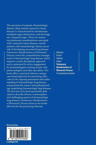 "This outstanding book focuses on the present knowledge and therapies, as well as potential future advances, in the fields of lung disease and the rheumatic diseases. ... This is a tool that will most benefit practicing rheumatologists, pulmonologists, and any trainees in these fields. ... This is a great book for practicing clinicians and trainees. It is easy to read and well organized; a good reference to have on hand." (Kyle Sinclair, Doody's Book Reviews, May, 2015)