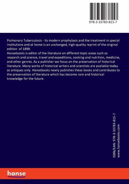 Pulmonary Tuberculosis - its modern prophylaxis and the treatment in special institutions and at home is an unchanged, high-quality reprint of the original edition of 1899.