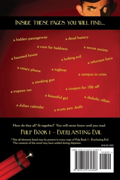 ""The best book ever written."" This is just one of the many ways in which Pulp Book I - Everlasting Evil has not been described. Reviewers across the nation have been unanimous in their disregard for this amazing novel by first-time author James E. Sarver! Follow the adventures of Miles Hudson as he attempts to unravel the sinister secrets of...THE UNKNOWN! Thrill to: An ancient conspiracy! Repeated skullduggeries! A historic house! A hidden underground library! A poisoning! A midnight assassination attempt! A damsel in distress! A corrupt judge! A Chinese restaurant with an Italian name! A French superspy! A Dutch sea captain and his three mutinous sons! A localized hurricane! And hundreds of remote-controlled boats with bombs hidden in them! Inspired by every pulp story ever written, but in a good way, you've never read anything quite like...Pulp Book I - Everlasting Evil!