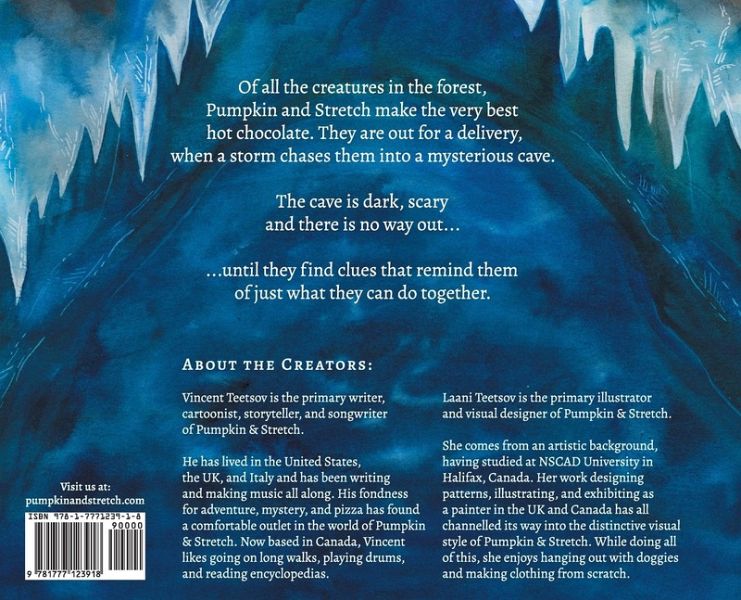 Pumpkin and Stretch is a children's picture book about two creatures who get lost in a scary cave. Through self-discovery, friendship, and a few mysterious clues they uncover, they find their way out together.
