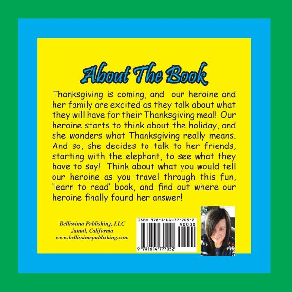 Thanksgiving is coming, and the entire family knows what they want to eat to celebrate. But then, our heroine decides that there must be more to Thanksgiving than a celebratory meal. And so, (as usual) our heroine decides to ask everyone she knows what they think about Thanksgiving. And she begins with the elephant! But they all tell her the same thing, and she is left wondering why everyone celebrates Thanksgiving because they have no answers for her. That is . . . until she visits the library! Think about what you would tell our heroine about what Thanksgiving means, as you practice reading skills, and as you build your reading word vocabulary through word recognition, word repetition and rhyme, all of which you will find on the pages this fun, 'learn to read' book written and illustrated by the award winning author, attorney and former teacher, Penelope Dyan. Most of all, have fun as you learn; because learning must be fun, or a kid like you just won't love to learn! And when you are finished traveling through this fun, 'learn to read' book, you can go to Bellissimavideo's YouTube channel and watch the free, fun music video that goes with this book! !