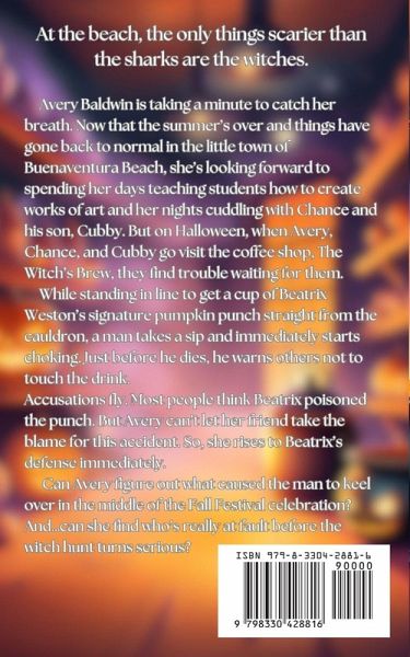 At the beach, the only things scarier than the sharks are the witches. Avery Baldwin is taking a minute to catch her breath. Now that the summer's over and things have gone back to normal in the little town of Buenaventura Beach, she's looking forward to spending her days teaching students how to create works of art and her nights cuddling with Chance and his son, Cubby. But on Halloween, when Avery, Chance, and Cubby go visit the coffee shop, The Witch's Brew, they find trouble waiting for them. While standing in line to get a cup of Beatrix Weston's signature pumpkin punch straight from the cauldron, a man takes a sip and immediately starts choking. Just before he dies, he warns others not to touch the drink. Accusations fly. Most people think Beatrix poisoned the punch. But Avery can't let her friend take the blame for this accident. So, she rises to Beatrix's defense immediately. Can Avery figure out what caused the man to keel over in the middle of the Fall Festival celebration? And...can she find who's really at fault before the witch hunt turns serious?