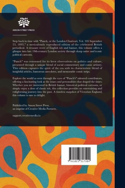 Step back in time with "Punch, or the London Charivari, Vol. 105 September 23, 1893," a meticulously reproduced edition of the celebrated British periodical. A treasure trove of English wit and humor, this volume offers a glimpse into late 19th-century London society through sharp satire and iconic political cartoons. "Punch" was renowned for its keen observations on politics and culture, presented through a unique blend of social commentary and comic artistry. This edition captures the spirit of the era with its characteristic blend of insightful articles, humorous anecdotes, and memorable comic strips. Explore the world as seen through the eyes of "Punch's" talented contributors, offering a fascinating look at the issues and personalities that shaped the times. Whether you are interested in British humor, historical political cartoons, or simply enjoy a dose of classic wit, this collection provides an entertaining and enlightening journey into the past. A timeless snapshot of Victorian England, this volume is sure to delight. This work has been selected by scholars as being culturally important, and is part of the knowledge base of civilization as we know it. This work is in the public domain in the United States of America, and possibly other nations. Within the United States, you may freely copy and distribute this work, as no entity (individual or corporate) has a copyright on the body of the work. Scholars believe, and we concur, that this work is important enough to be preserved, reproduced, and made generally available to the public. We appreciate your support of the preservation process, and thank you for being an important part of keeping this knowledge alive and relevant.