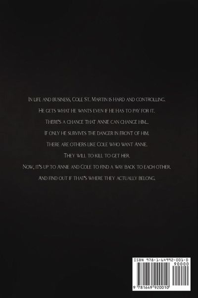 In life and business, Cole St. Martin is hard and controlling. He gets what he wants even if he has to pay for it. There's a chance that Annie can change him... If only he survives the danger in front of him. There are others like Cole who want Annie. They will to kill to get her. Now, it's up to Annie and Cole to find a way back to each other. And find out if that's where they actually belong.
