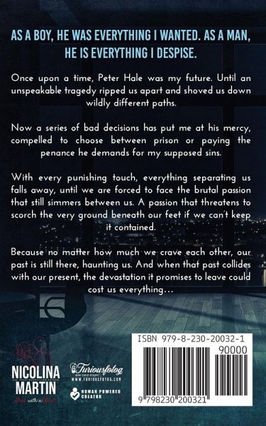 As a boy, he was everything I wanted. As a man, he is everything I despise. Once upon a time, Peter Hale was my future. Until an unspeakable tragedy ripped us apart and shoved us down wildly different paths. Now a series of bad decisions has put me at his mercy, compelled to choose between prison or paying the penance he demands for my supposed sins. With every punishing touch, everything separating us falls away, until we are forced to face the brutal passion that still simmers between us. A passion that threatens to scorch the very ground beneath our feet if we can't keep it contained. Because no matter how much we crave each other, our past is still there, haunting us. And when that past collides with our present, the devastation it promises to leave could cost us everything... *Intended for an 18+ audience*