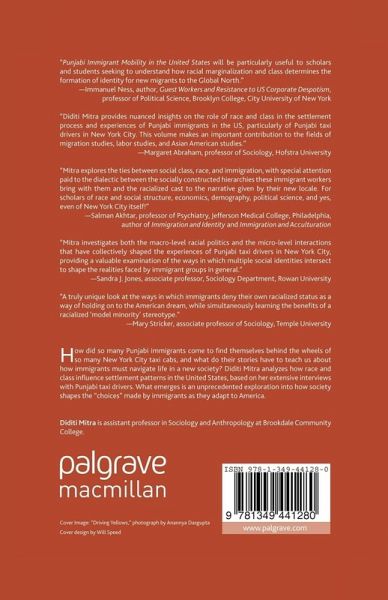 "Diditi Mitra provides nuanced insights on the role of race and class in the settlement process and experiences of Punjabi immigrants in the US, particularly of Punjabi taxi drivers in New York City. Woven through with engrossing narratives and thoughtful analysis, this volume makes an important contribution to the fields of migration studies, labor studies and Asian American studies." - Margaret Abraham, professor of Sociology, Hofstra University