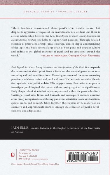 Punk Beyond the Music: Tracing Mutations and Manifestations of the Punk Virus expands the conversation about punk from a focus on the musical genre to its surrounding cultural manifestations. Focusing on some of the most recurring practices and characteristics of punk culture —DIY, attitude, outsider identities, symbols, and politics—Iain Ellis engages many illustrative examples to investigate punk beyond the music without losing sight of its significance. Early chapters look at arts that have always existed within the punk subculture (writings, visual arts, films, and humor); subsequent sections examine areas rarely recognized as exhibiting punk characteristics (such as education, sports, crafts, and comics). Taken together, the chapters invite readers on an extensive and unpredictable journey through the evolution of punk’s developments and adaptations.