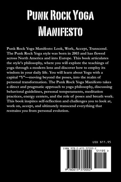 Punk Rock Yoga Manifesto: Look, Work, Accept, Transcend. The Punk Rock Yoga style was born in 2003 and has flowed across North America and into Europe. This book articulates the style's philosophy, where you will explore the teachings of yoga through a modern lens and discover how to employ its wisdom in your daily life. You will learn about Yoga with a capital "Y"-moving beyond the poses, into the realm of personal transformation. The Punk Rock Yoga Manifesto takes a direct and pragmatic approach to yoga philosophy, discussing behavioral guidelines, personal temperaments, meditation practices, energy centers, and the role of poses and breath work. This book inspires self-reflection and challenges you to look at, work on, accept, and ultimately transcend everything that restrains you from personal evolution.
