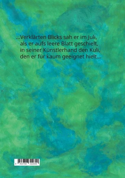 ...Verklärten Blicks sah er im Juli, als er aufs leere Blatt geschielt, in seiner Künstlerhand den Kuli, den er für kaum geeignet hielt...