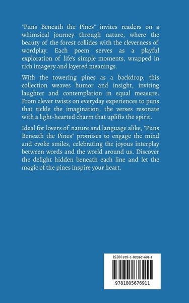 "Puns Beneath the Pines" invites readers on a whimsical journey through nature, where the beauty of the forest collides with the cleverness of wordplay. Each poem serves as a playful exploration of life's simple moments, wrapped in rich imagery and layered meanings. With the towering pines as a backdrop, this collection weaves humor and insight, inviting laughter and contemplation in equal measure. From clever twists on everyday experiences to puns that tickle the imagination, the verses resonate with a light-hearted charm that uplifts the spirit. Ideal for lovers of nature and language alike, "Puns Beneath the Pines" promises to engage the mind and evoke smiles, celebrating the joyous interplay between words and the world around us. Discover the delight hidden beneath each line and let the magic of the pines inspire your heart.