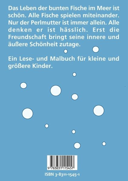 Das Leben der bunten Fische im Meer ist schön. Alle Fische spielen miteinander. Nur der Perlmutter ist immer alleine. Alle denken er ist häßlich. Erst die Freundschaft bringt seine innere und äußere Schönheit zutage. Denn es gibt jemand, der mutig genug ist, sich entgegen aller Vorbehalte für eine Freundschaft mit Pupa einzusetzen. "Pupa - der Perlmutter" ist ein gewaltfreies Lese-/Vorlese- und Malbuch für Kinder im Alter von 4-9 Jahren. Die Kinder können die Zeichnungen im Buch nach ihrer Fantasie ausmalen und so die Geschichte lebendig werden lassen. Die Schreibweise entspricht den Regeln der neuen Rechtschreibung.