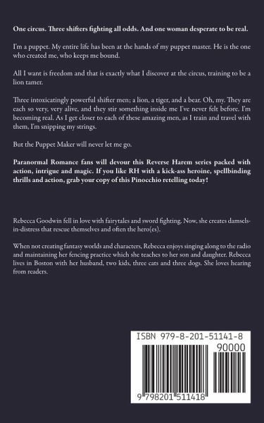 One circus. Three shifters fighting all odds. And one woman desperate to be real. I'm a puppet. My entire life has been at the hands of my puppet master. He is the one who created me, who keeps me bound. All I want is freedom and that is exactly what I discover at the circus, training to be a lion tamer. Three intoxicatingly powerful shifter men; a lion, a tiger, and a bear. Oh, my. They are each so very, very alive, and they stir something inside me I've never felt before. I'm becoming real. As I get closer to each of these amazing men, as I train and travel with them, I'm snipping my strings. But the Puppet Maker will never let me go. Paranormal Romance fans will devour this Reverse Harem series packed with action, intrigue and magic. If you like RH with a kick-ass heroine, spellbinding thrills and action, grab your copy of this Pinocchio retelling today!