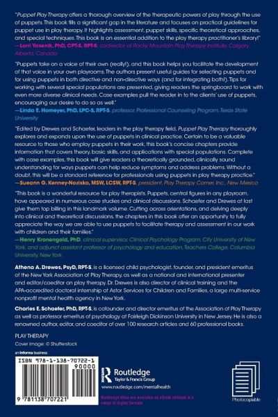 Puppet Play Therapy is a comprehensive guidebook that describes the basic skills, techniques, and applications for selecting and working with puppets in specific types of settings and populations.