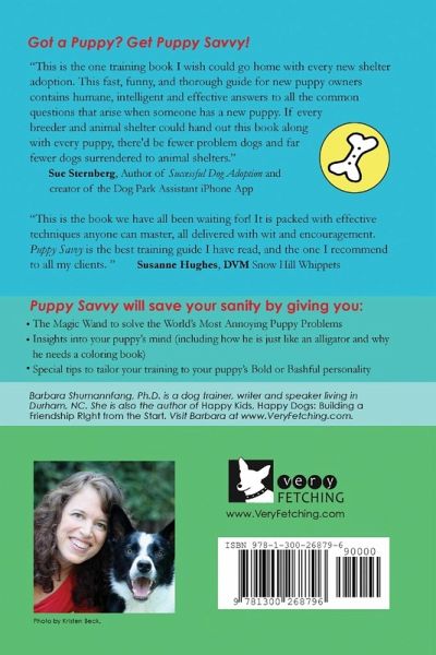 Is your puppy biting, chewing, barking, jumping up, peeing indoors, or pulling on leash? Using the kind methods and humor she has shared with her dog-training clients since 1999, Barbara Shumannfang helps you solve your puppy problems. No bribes, no bullying. Learn to customize your training and socialization plan according to your pup's personality. Learn to use your pup's natural needs as powerful motivators to build good habits. "This is the one training book I wish could go home with every new shelter adoption. This fast, funny, and thorough guide for new puppy owners contains humane, intelligent and effective answers to all the common questions that arise when someone has a new puppy. If every breeder and animal shelter could hand out this book along with every puppy, there'd be fewer problem dogs and far fewer dogs surrendered to animal shelters." --Sue Sternberg, Innovator in the field of shelter dog welfare, author, and creator of the Dog Park Assistant iPhone App and GreatDogProductions.com