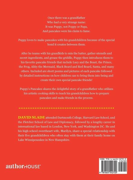 Once there was a grandfather Who had a very strange name: It was Puppy, not Papa or Grampa, And pancakes were his claim to fame. Puppy loves to make pancakes with his grandchildren because of the special bond it creates between them. After he teams with his grandkids to mix the batter, gather utensils and secret ingredients, and grease the griddle, Puppy then introduces them to his favorite pancake friends that include Lucy and the Beast, the Prince, the Frog, Abby the Mermaid, Black Beard and Red Beard, Santa, and many others. Included are short poems and pictures of each pancake followed by detailed instructions on how children can bring them into being and create their own special pancake friends! Puppy's Pancakes shares the delightful story of a grandfather who utilizes his artistic cooking skills to teach his grandchildren how to prepare pancakes and make friends in the process.