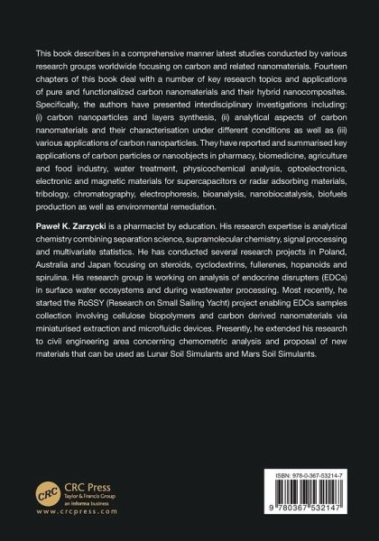 This book describes in a comprehensive manner latest studies conducted by various research groups worldwide focusing on carbon and related nanomaterials. Fourteen chapters of this book deal with a number of key research topics and applications of pure and functionalized carbon nanomaterials and their hybrid nanocomposites. Specifically, the authors have presented interdisciplinary investigations including: (i) carbon nanoparticles and layers synthesis, (ii) analytical aspects of carbon nanomaterials and their characterisation under different conditions as well as (iii) various applications of carbon nanoparticles. They have reported and summarised key applications of carbon particles or nanoobjects in pharmacy, biomedicine, agriculture and food industry, water treatment, physicochemical analysis, optoelectronics, electronic and magnetic materials for supercapacitors or radar adsorbing materials, tribology, chromatography, electrophoresis, bioanalysis, nanobiocatalysis, biofuels production as well as environmental remediation.