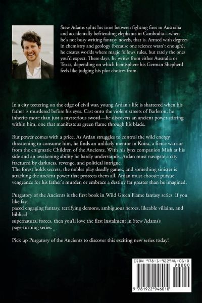 In the eternal war between heaven and hell, a third power is introduced that upsets the balance. Ardan is forced to grow up quickly when he witnesses' his father's brutal murder. Then a few days later, his mother vanishes amid a myriad of mysteries, that plunges Barleron into civil war. As a gifted forest stalker, he makes deals with the Darkness and unwittingly wields the deadly power of the Ancients. Yet through it all, there is something more sinister stalking in the shadows, drawing armies and the powers of Light and Darkness down upon them. Victory here will have ramifications all over the world of Eden, drawing battle lines that divide family and friends. Can Ardan find a way to save the city or will Barleron be another casualty in the eternal war? Purgatory of the Ancients is the first book in Wild Green Flame fantasy series. If you like fast paced engaging fantasy, terrifying demons, ambiguous heroes, likeable villains, and biblical supernatural forces, then you'll love the first instalment in Stew Adams's page-turning series. Pick up Purgatory of the Ancients to discover this exciting new series today!