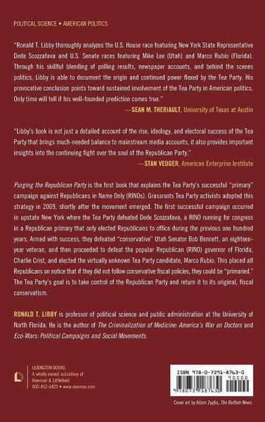 Ronald T. Libby's Purging the Republican Party examines Tea Party primary campaigns against Republicans including the defeats of Dede Scozzafava in New York and Bob Bennett in Utah, and the election of Marco Rubio in Florida. It includes an assessment of the Tea Party’s political prospects following the 2012 elections and beyond.